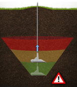 IMPORTANT: If the soil’s mechanical shear strength is exceeded, bearing capacity failure may occur. When this happens, the load on the anchor diminishes as the anchor begins to extend further, shearing through the soil. Proper soil analysis and anchor selection are critical to preventing failure and optimising performance.