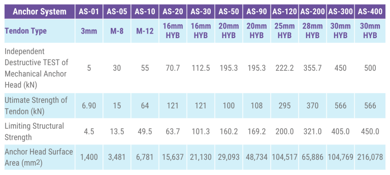 All kN loadings are based upon the optimal tendon choice for the mechanical Anchoring systems to achieve Ultimate Resistance test.