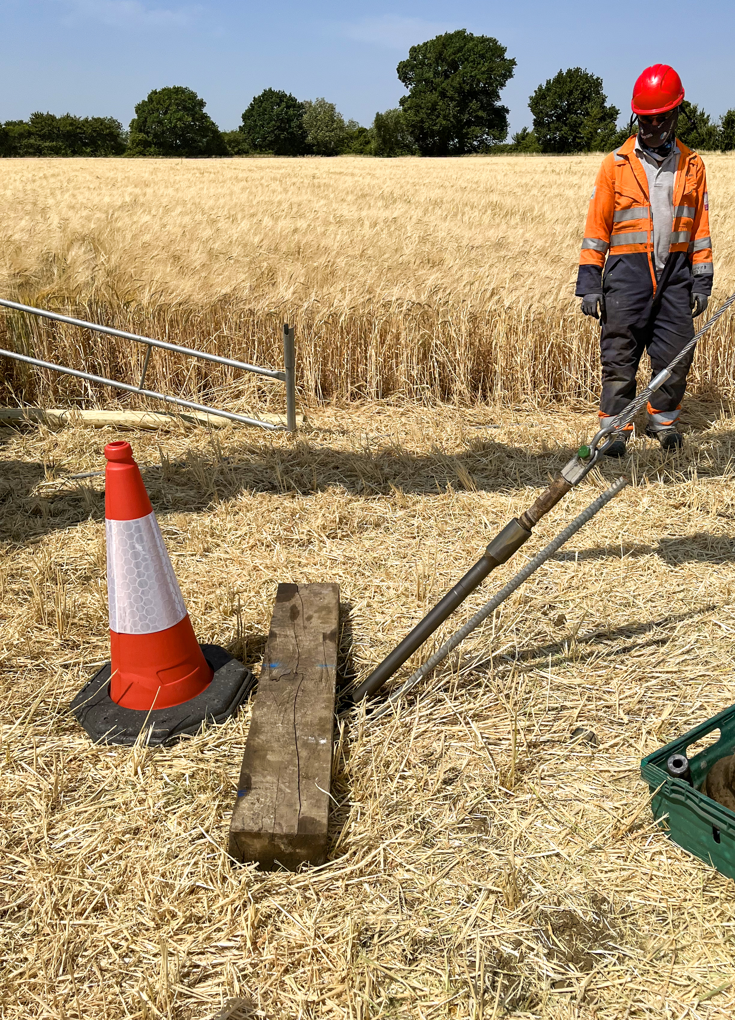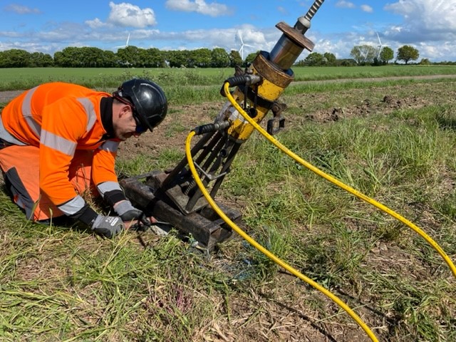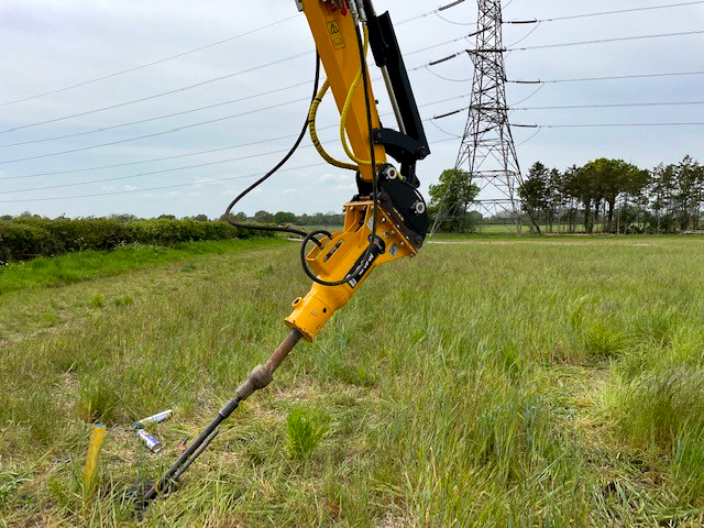 The installation process was carried out by Balfour Beatty’s subcontractor using a JCB fitted with a hydraulic breaker. This method ensured efficient and secure anchor placement.