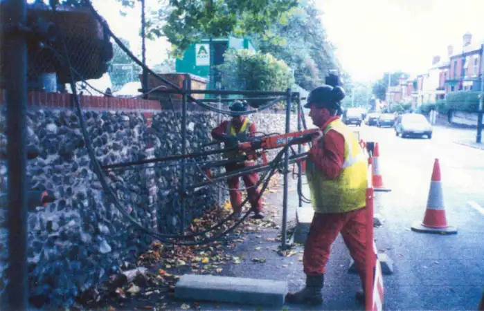 Stainless steel mechanical ground anchors with 16mm high yield bars and Combi-Tec concealed top terminations were specified by the Council’s Engineers Department. Installed by sister company, WT Specialist Contracts Ltd, the anchors were inserted through 102mm diameter core drilled holes in the flint wall, hammered 6m into the ground and then proof loaded to 36kN.