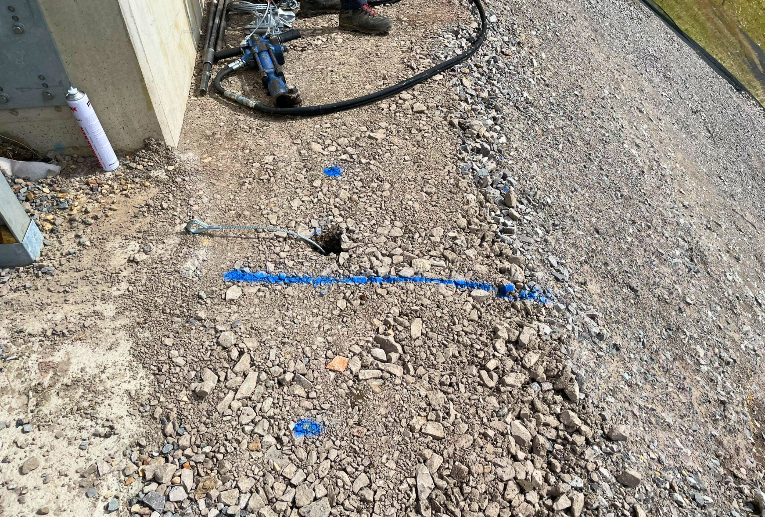 Before installation, a site test was conducted to confirm the suitability of the Vulcan Earth Anchor system. Engineers tested the AS-10 galvanised anchors, ensuring they could withstand the required 13kN load capacity. The test successfully validated their performance, confirming they met all safety and durability requirements