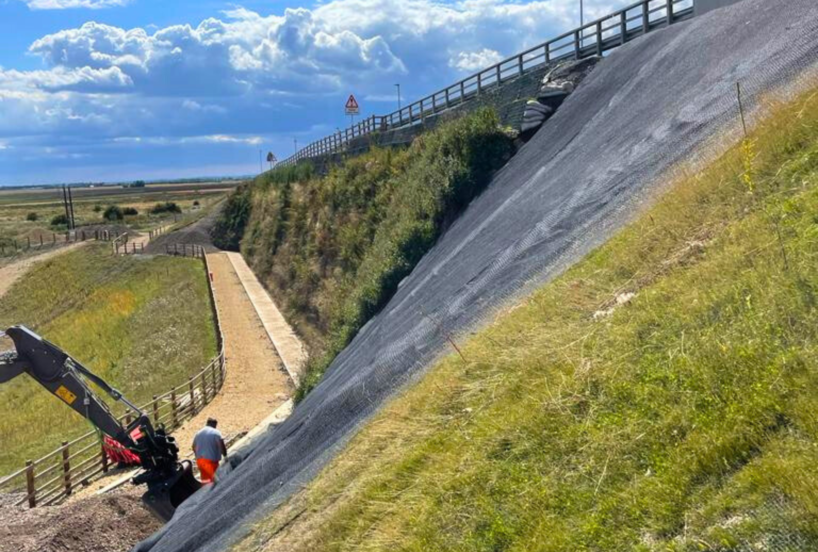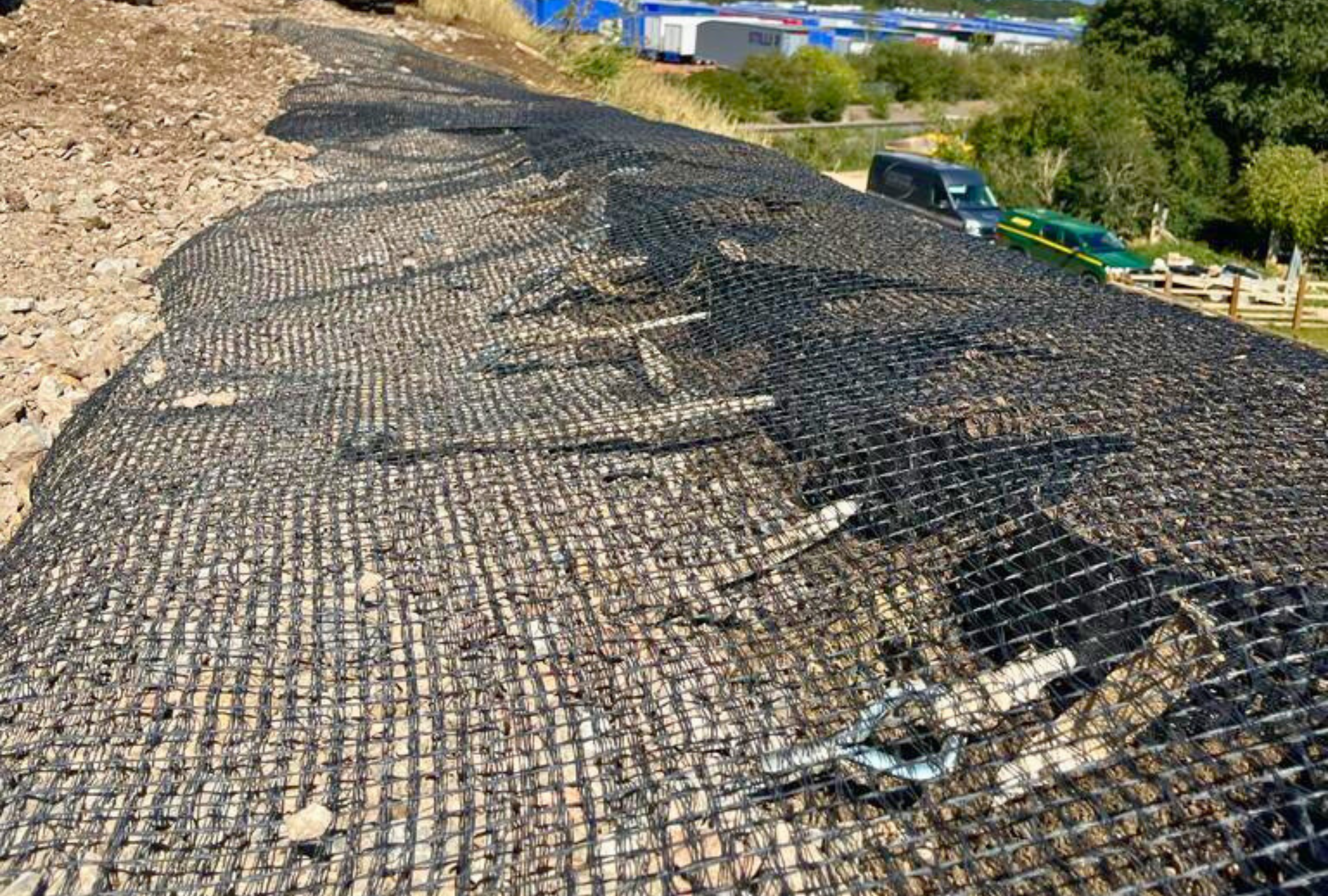 At Kings Dyke, Peterborough, a new road development required the re-profiling of a 70-degree slope. The slope, composed of Type 1 fill, needed reinforcement to ensure long-term stability. Additionally, an aesthetically pleasing solution was required to support vegetation growth.