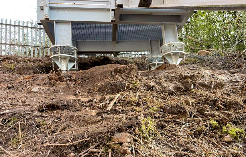 Adjustable interface plates were incorporated to allow for 7° lateral adjustment, ensuring the staircase remained level despite uneven terrain.