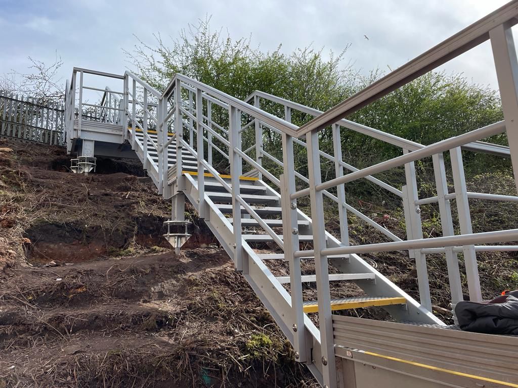The project achieved its objectives, delivering a secure and stable GRP staircase on the sloped embankment. The use of adjustable interface plates ensured the staircase remained level, even on challenging terrain, providing a reliable solution for safe access to the cess walkway.