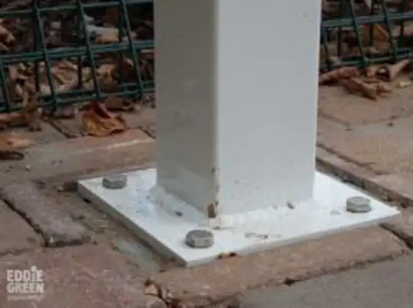 The whole operation of Anchor Post installation to final sign fixing was timed at 30 minutes. Further time was required to remove spoil from the areas of installation of the Anchor Posts. One of the signs was placed on a concrete/stone footing which allowed the use of Anchor Bolts to fix the posts to the concrete.