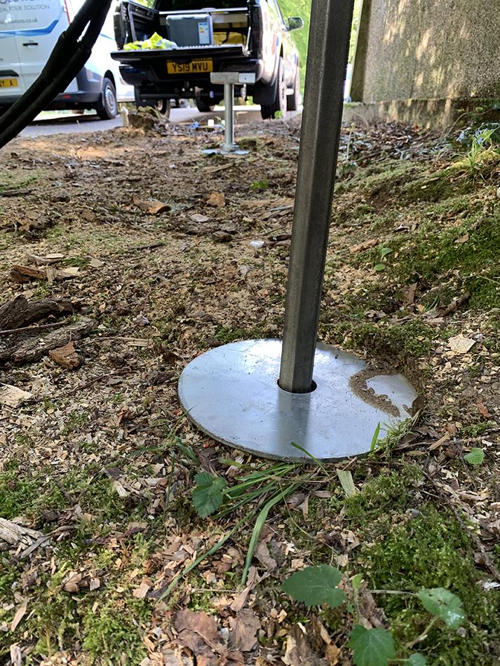 Once the Anchors were installed, the framework could easily be adjusted to a level position as the Anchor Base is capable of a height variation of 300mm to overcome uneven ground conditions. The installation of the Anchors was completed extremely quickly (4No. Ab installed in 10 minutes percussion driven) and the Anchor Base allowed full load capacity to be achieved immediately, a major practical and time saving advantage compared to the use of wet trades.
