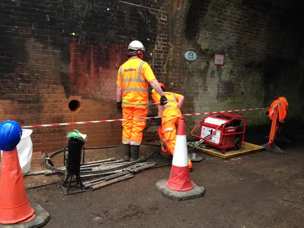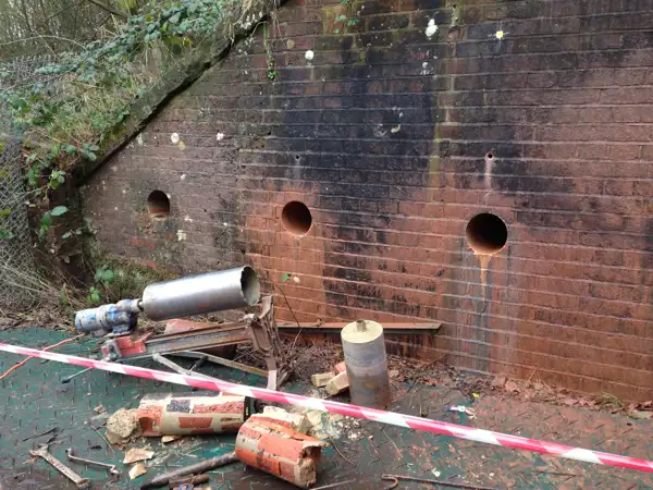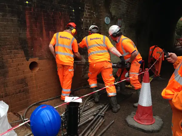 Lucy’s Bridge is the only pedestrian and single vehicle access to a local housing estate and Caravan Park in Burgess Hill, West Sussex. Suttle Projects were awarded the contract to provide the repairs to the structure based on the survey and subsequent recommendations of engineer Crouch Waterfall & Partners. The wing walls were identified as having a number of repairs to the brickwork, brickwork mortar and coping units. Anchor Systems (International) Ltd mechanical ground anchor solution was identified by the engineer as a system of choice to stabilise all four wing walls and both spandrel walls.