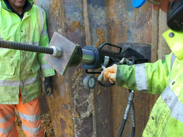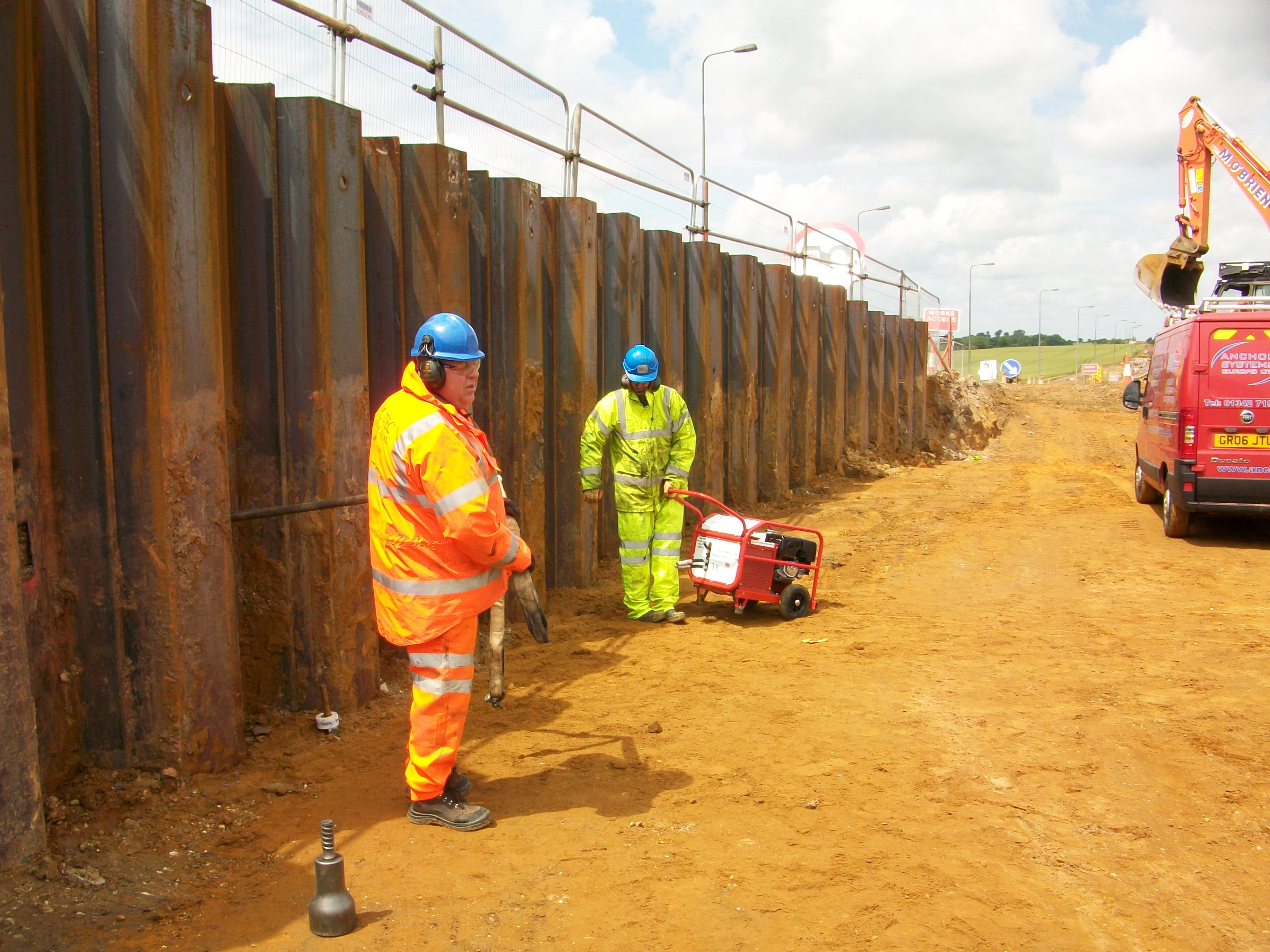 The anchor of choice was the AS-200, this anchor is rated at 200 kN and came complete with a 25mm bar and load plate. Three anchors were tested by Anchor Systems (International) Ltd with the results being verified by the Costain Ltd Engineer