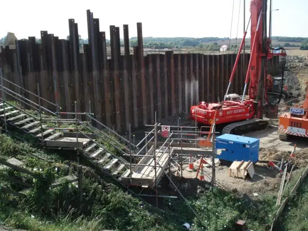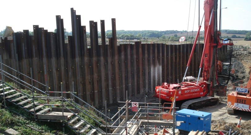 The M1 Junction 12 North Bound on-ramp needed refurbishment as part of the M1 improvements. This involved the temporary anchoring of a sheet pile wall while allowing the traffic to continue using the on ramp. The anchors were to be installed in 5 levels as the excavation was carried out.
