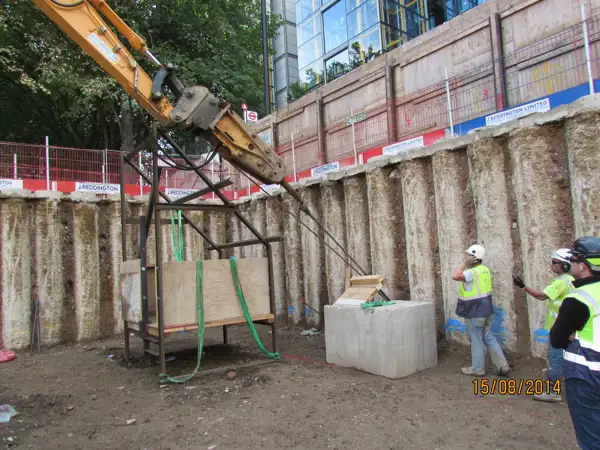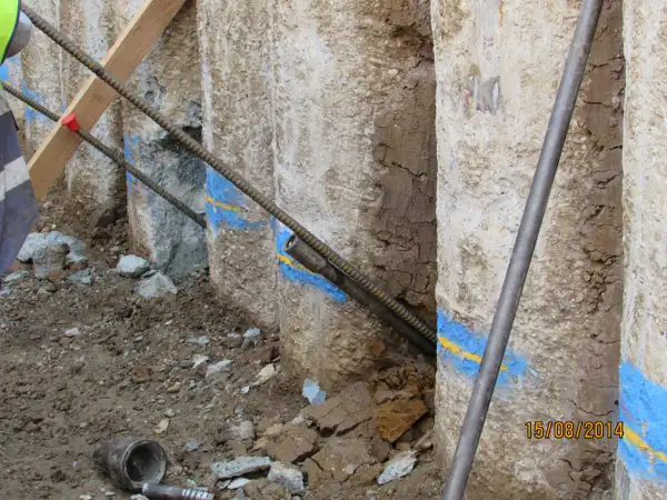 ASIL were engaged by Miller Piling to work with J Reddington to provide a design for the ground anchor solution. We also provided calculations to support the fact that there would be no detrimental impact to local services. In the development of the ground anchor design an innovative waler beam solution was used to distribute the anchor loads across the contiguous piled wall. This innovation created the understanding that a designed capping beam (est. £150k) was no longer required.
