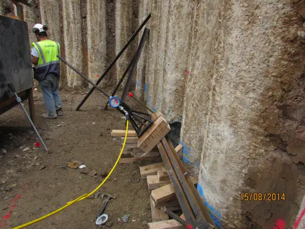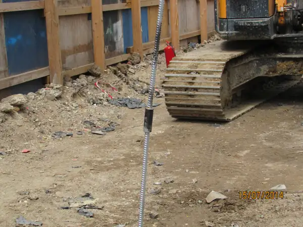 ASIL performed a site test to determine the localised soil mechanics failure condition. The AS-300 Ground Anchor was tensile tested to 224kN Ultimate Resistance based on the design and a lock off load (working load) of 157kN. The AS-300 ground anchors were installed to depths of 7-12m and average installation time was between 20-30 minutes using a 20 ton excavator. During the construction phase ASIL intermittently provided a site supervisory service to ensure that the construction of the ground anchors was being completed to the design statement and installation methodology. Our involvement in this process ensured an unimpeded installation and subsequent working relationship with all parties.