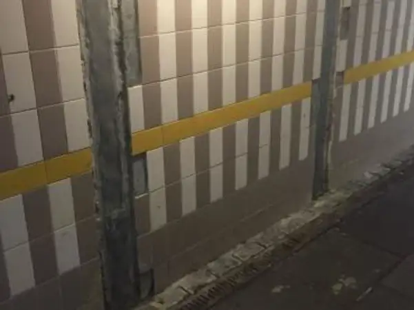 South Kenton station is a Network Rail station served by London Underground Bakerloo line and London Overground trains. From opening in 1933 the station had a footbridge access to the island platform from both sides of the railway. Since 1964 an underpass was constructed using culverts and the footbridge removed. Over the years there has been a well-documented history of flooding to the subway. Much of the time flooding is due to the inadequate/poor seals to the box reinforced concrete joints. The subway walls have been subjected to excessive hydrostatic pressure from the undrained soil behind the walls and this has led to tiles falling off the walls and water leakage. Anchor Systems (International) Ltd ASIL were asked to help with the solution to this significant problem which required periodic maintenance and repairs that did not solve the root cause of the problem.