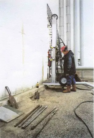 At its near Rotterdam, Holland, Shell had a large oil storage tank, some 46m in diameter and over 20m high. Despite its size and weight, the tank needed to be fully secured to the ground to prevent any possibility of uplift when it was empty of liquid and full of gas as this would fracture connecting pipework.