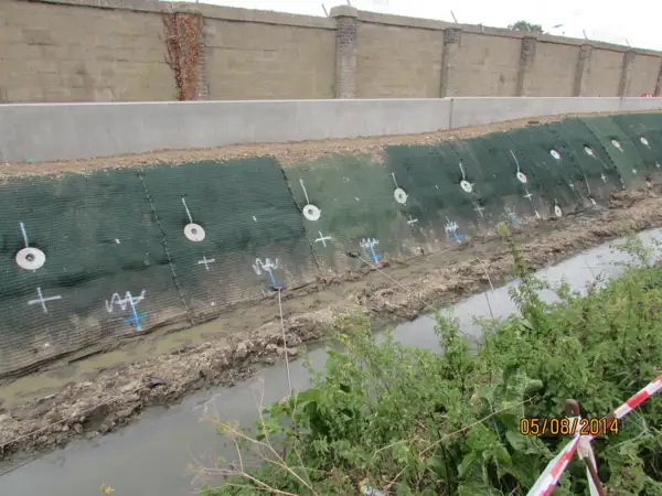 A section of the bank was to be reprofiled and bank levels raised to provide the flood protection. Ground anchors were required to ensure the stability of the slopes against shallow and deep-seated failures.