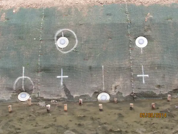 Based on load results achieved on site, a total quantity of 535no. AS-30 Vulcan Earth Anchors were specified across the slope sections, each with a 21kN proof load and 17kN lock off load. A recessed pattress plate and geo-mesh facing was specified in order to allow vegetation to grow over and completely conceal the system allowing for a natural looking embankment.