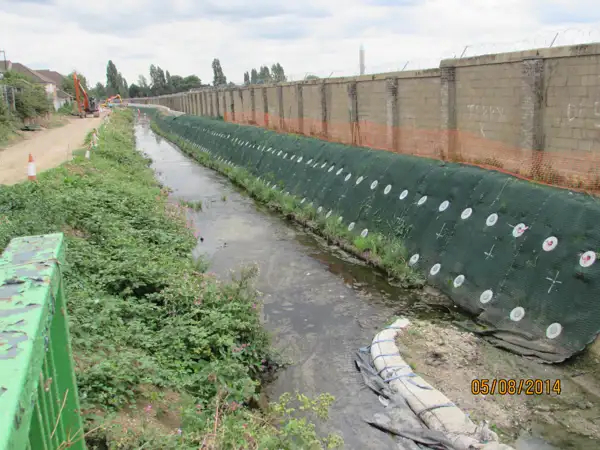 Land and Water approached Anchor Systems with a riverbank stabilisation and flood alleviation scheme situated in Salmons Brook, Enfield, London. A mechanical ground anchor solution was initially proposed by Halcrow and was the preferred solution over other traditional stabilisation methods such as soil nailing etc. due to the low risk of contamination of the waterway being a ‘dry’ system.