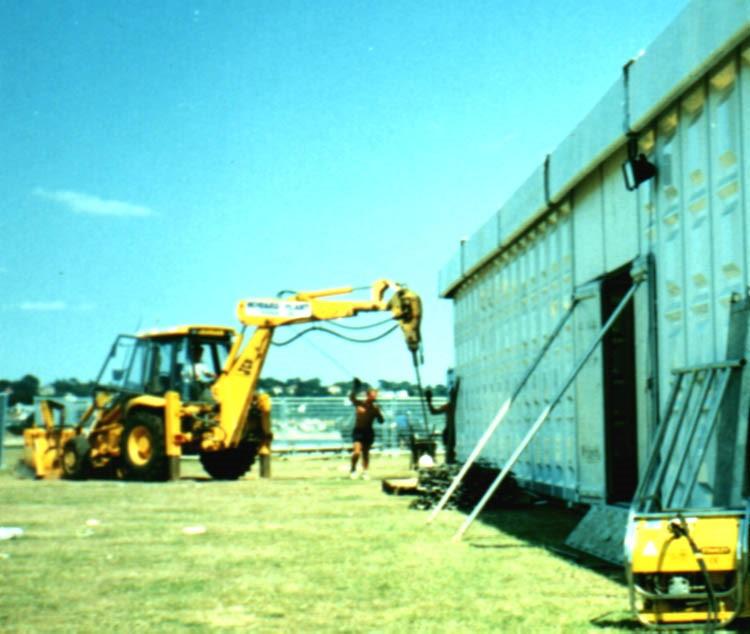 Using a Montebert 125 breaker mounted on a JCB, over 130 mechanical ground cast iron anchors, with 20mm high yield bars, were then driven into the very poor quality ground at regular intervals around the arena and proof-loaded to 100kN.