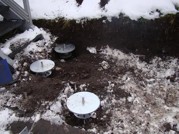 The complete foundation system was installed to the desired drawing and specification in 90 minutes based on using conventional lines and levels. The Anchor Post foundations were installed over an uneven surface to demonstrate the capability of the system which does not require a concrete foundation to maintain the levels.