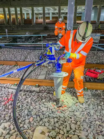 A 400m segregation barrier was required within the six foot at Westbourne Park Station to divide the Network Rail and Crossrail Tracks. Due to the depth of ballast being over 1000mm, the proposed segregation barrier solution would utilise multiple concrete foundations, involving multiple RRV’s, ballast removal, waste management, onsite concrete shuttering and mixing. This method of installation was estimated to take more than 20 weekend shifts with an initial budget of over £1million, deeming the works uneconomical for the client and the network.